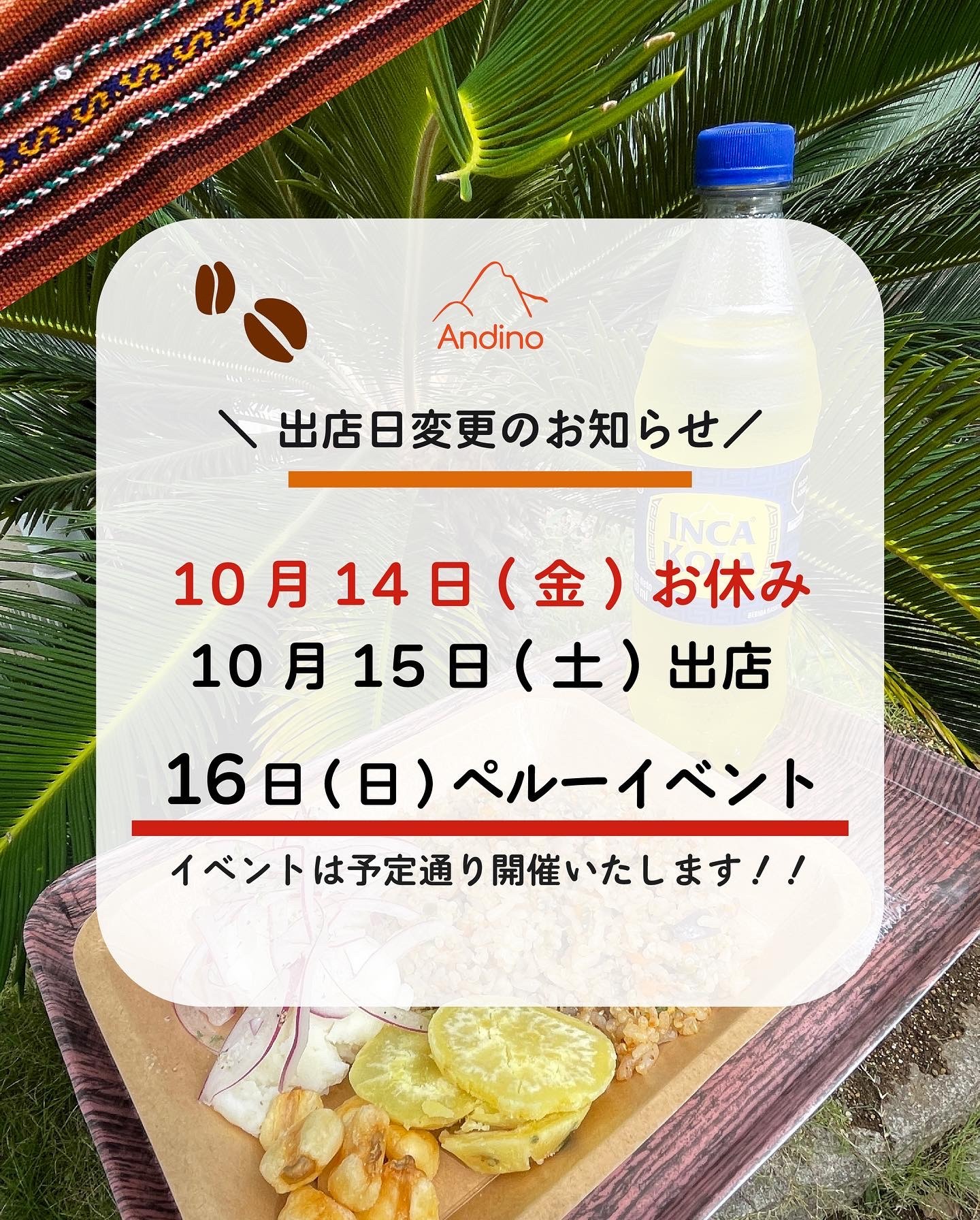 【📢本日10月14日(金)の植物園出店はお休みです🙇】 | Andino|南米ペルーカフェ